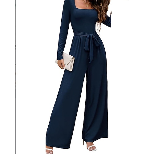 Per donna Tuta Elegante Tinta unica Manica Lunga Gamba larga Collo a U Allacciato Vacanza Casa Vestibilità regolare Blu Nero Rosa Estate