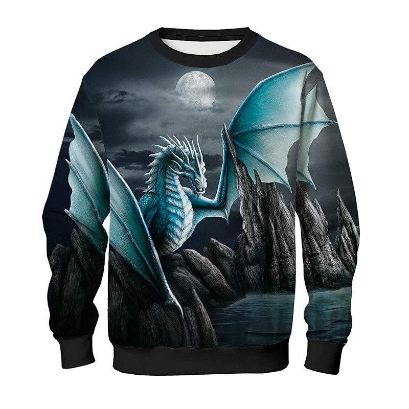 Sarah Richter Men's 3D Sweatshirt Black Crew Neck Dragon Print Party Casual Sports 3D Print Casual Fall Winter Clothing Apparel Hoodies Sweatshirts