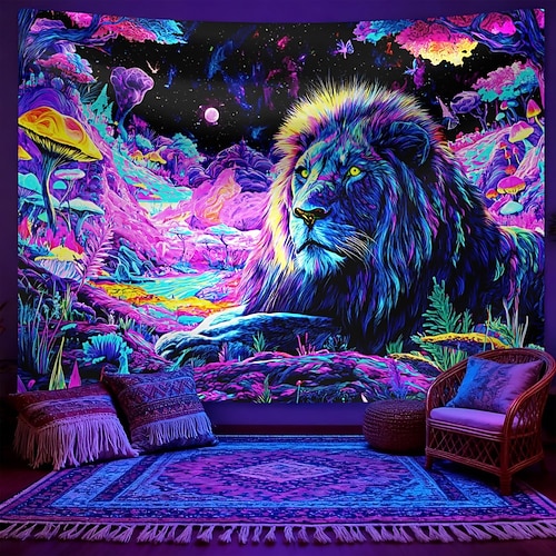 arazzo a luce nera reattivo ai raggi UV fosforescente festa fluorescente mandala al neon bohemien psichedelico psichedelico nebbioso arazzo appeso arte murale per soggiorno camera da letto