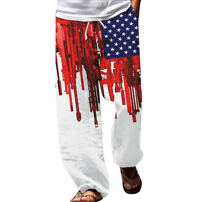 Men's US Flag Patriotic America's 250th Anniversary Trousers Baggy Pants Casual Pants Mid Waist Fashion Casual Outdoor Holiday Elastic Drawstring Waist Linen-Like Pants with Pockets Summer Spring 3D