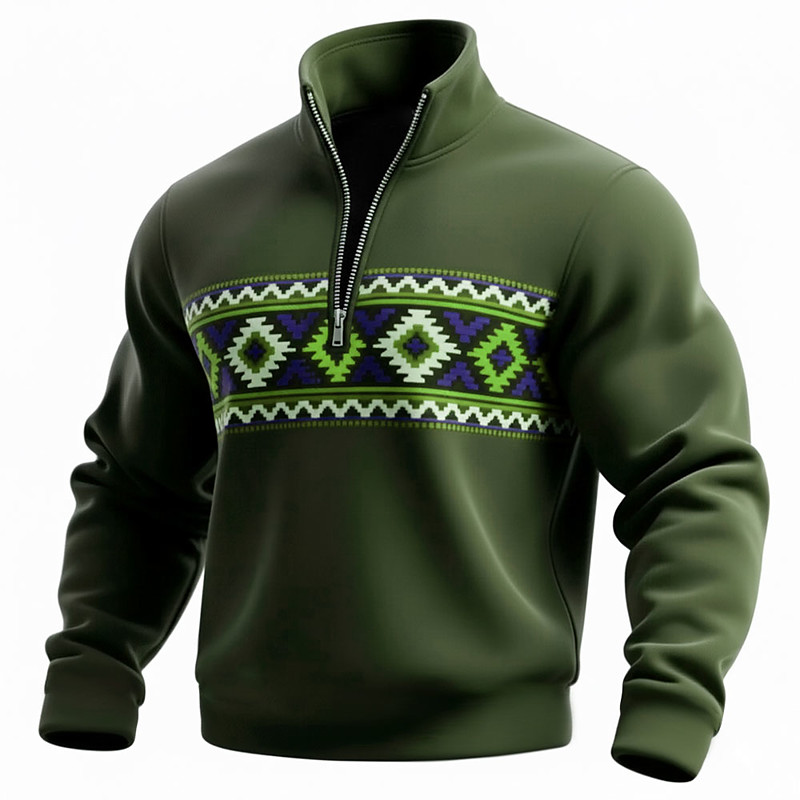 Men's Geometric Plaid Tribal Sweatshirt Sports Fashion Casual Zip Home Streetwear Work Party Blue Black Brown Green Fall All Seasons Designer S M L XL XXL XXXL