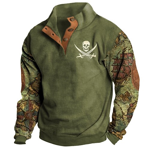 Herren Karte Anker Totenkopfe Pullover Sweatshirts Langarm Sweatshirt Henley Grafikdruck Ferien Ausgehen Festival Schnalle Druck Herbst Winter