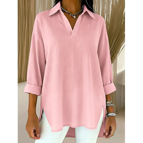 Per donna Blusa Tinta unica Elegante Essenziale Casual Manica Lunga Colletto a Camicia Top Regolari Quotidiano Lavoro Blu Bianco Giallo Rosa Rosso Estate Primavera Autunno