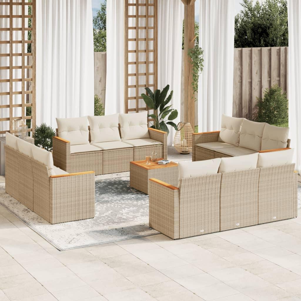 Sofasæt til haven 13 dele med hynder polyrattan beige