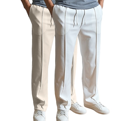 Per uomo Pantaloni Pantaloni estivi Pantaloni da spiaggia A cordoncino Plissettato Gamba dritta Liscio Comfort Traspirante Matrimonio Informale Giornaliero Di tendenza Classico Nero Bianco