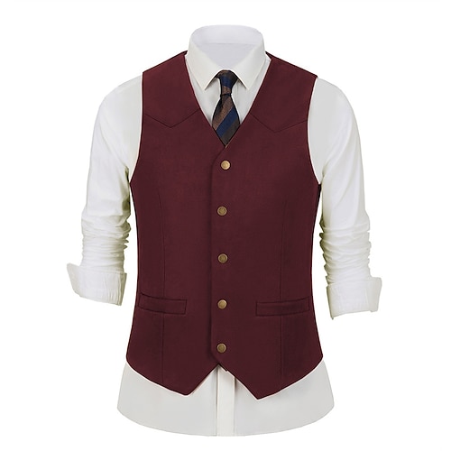 Per uomo Gilet da completo Panciotto Formale Matrimonio Ufficio Cerimonia Di tendenza 1920s Per tutte le stagioni Poliestere Tinta unita A V Taglia piccola Vinaccia Nero Bianco Blu marino Gilet