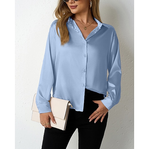 Per donna Camicia Elegant Elegante Raso/Satin Tinta unica Elegante Casual Manica Lunga Colletto a Camicia Top Regolari Quotidiano Uscire Bottoni Verde chiaro Blu Azzurro cielo Cammello Viola
