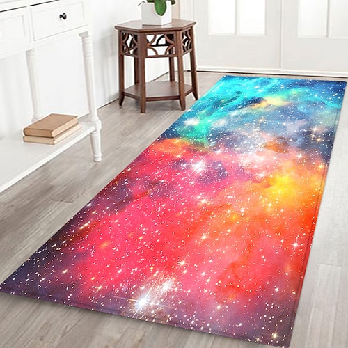 tappeto da corridoio con motivo a cielo stellato, tessuto di flanella stampato, decorazione per pavimenti per la casa, zerbino antiscivolo morbido, tappeto per ingresso e bagno