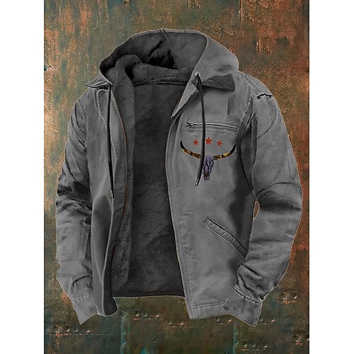 Per uomo Felpa con cappuccio a zip intera Giacca in Pile Felpa con cappuccio in pile Marrone Grigio scuro Con Cappuccio Mucca Stelle Tasca Dettagli in similpelle Casuale Quotidiano Abbigliamento