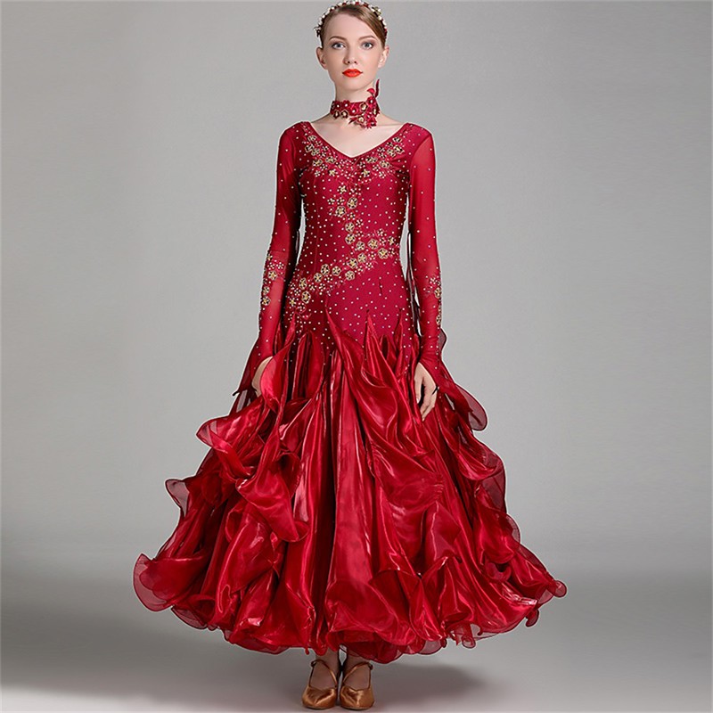 Latin Dance Ballroom Dance Dress Splicing Women's Performance Daily Wear Long Sleeve Crystal Cotton