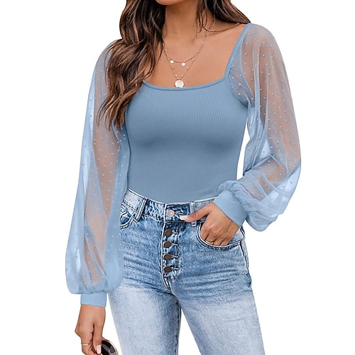 Per donna Blusa Top Eleganti Top in chiffon Top attillati A Pois Semplice Elegante Vintage Festa Manica Lunga Manica a Lanterna Collo quadrato Top corti Lavoro Quotidiano Ferie Arricciato Patchwork