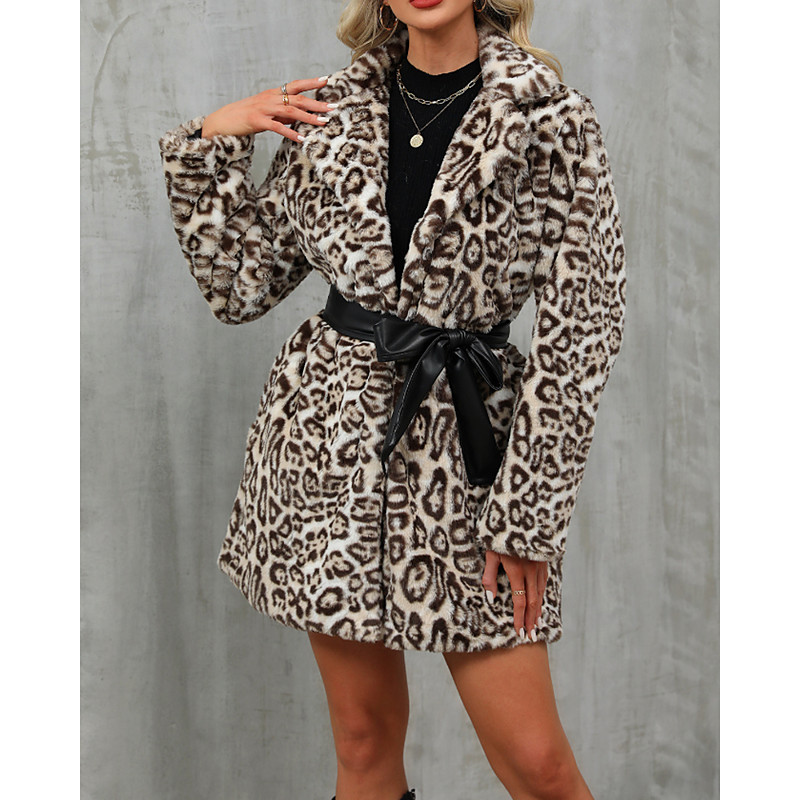 Women's Winter Coat Coat Warm Comfortable Pocket Casual Leopard Daily Wear Going out Weekend Long Turndown Regular Fit Long Sleeve Outerwear White Fall Winter
