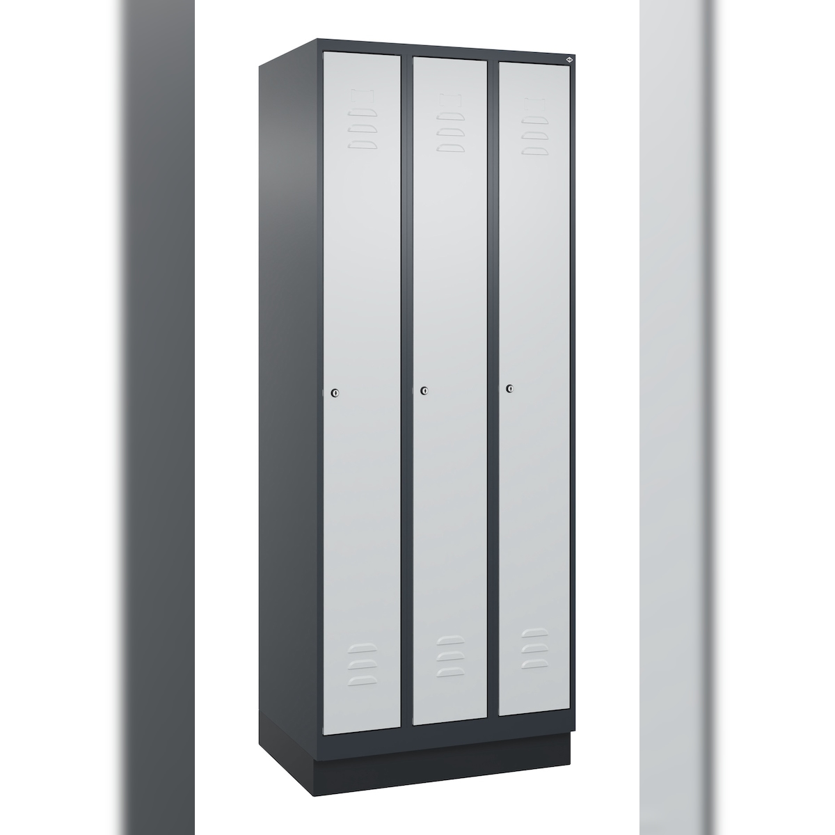C+P Spind Classic PLUS, Sockel, 3 Abteile, HxBxT 195x75x50cm, Zylinderschloss, Anthrazit/Hellgrau von PROREGAL