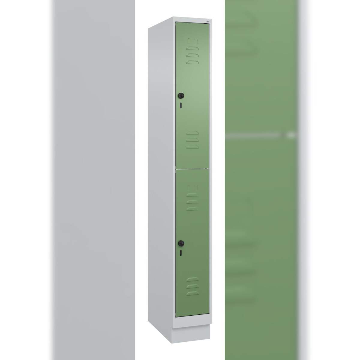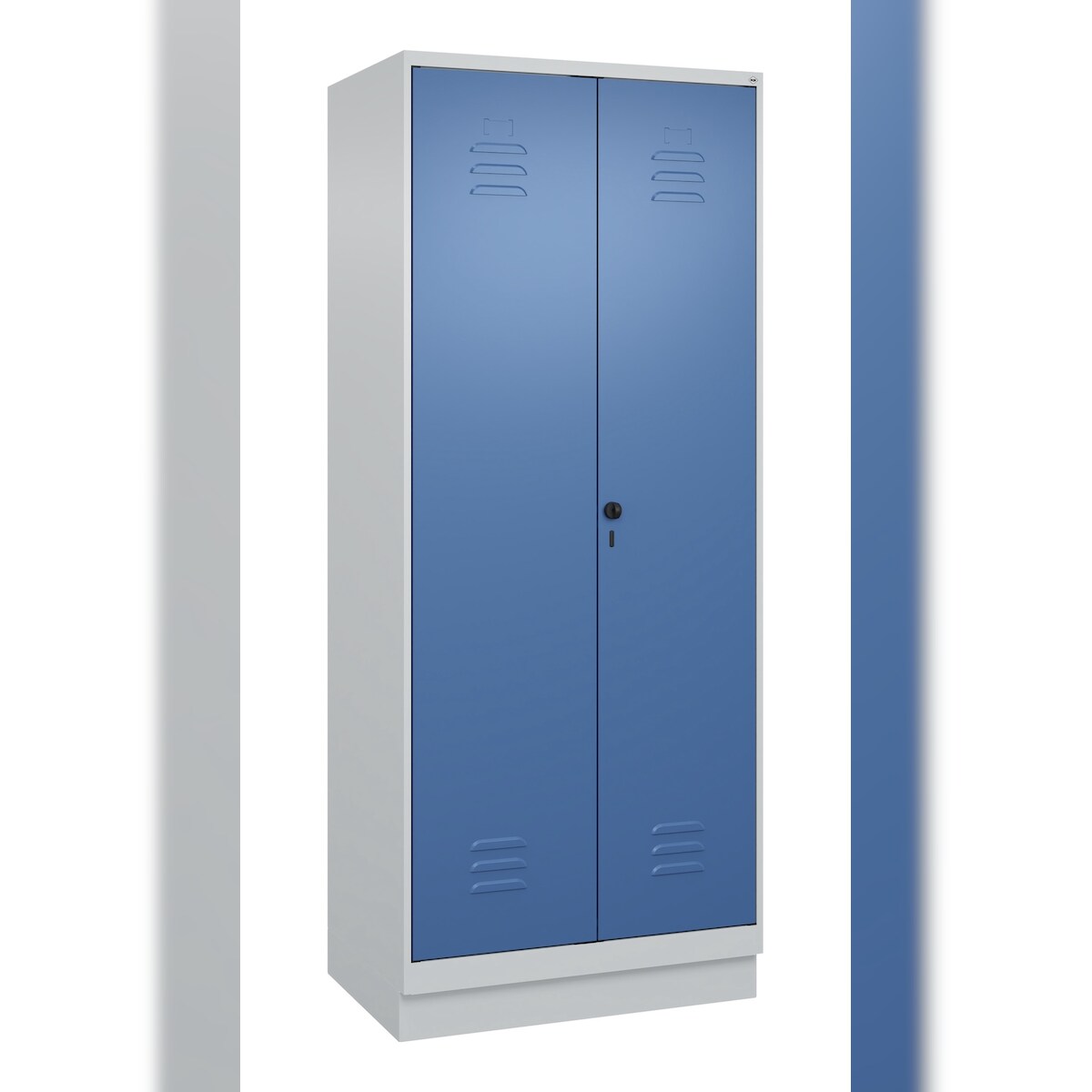 C+P Aufbewahrungs Doppel-Spind Classic PLUS, Sockel, 2 Abteile, HxBxT 195x80x50cm, Sicherheitsdrehriegel, Hellgrau/Fernblau von PROREGAL