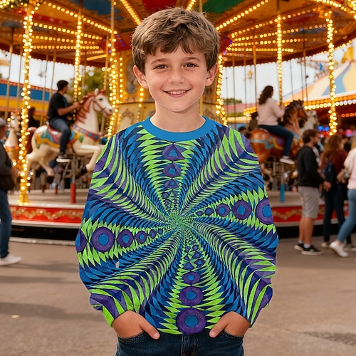Weihnachten Jungen 3D Grafik Jeder Sweatshirt Langarm Frühling Herbst Mode Basic Kinder 4-12 Jahre Rundhalsausschnitt Outdoor Lässig Täglich Normale Passform