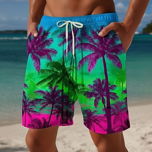 Per uomo Albero di Cocco Colore sfumato Piante Tropicali Costumi da bagno Pantaloncini da mare Pantaloncini da Surf Misura del girovita medio Hawaiano Vacanza al Mare Tasche Laterali fodera in rete