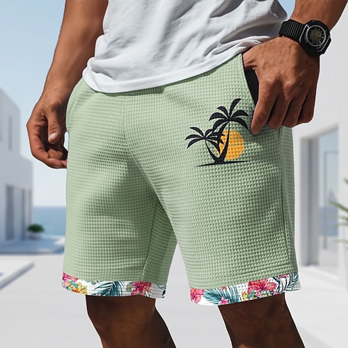 Per uomo Albero di Cocco Piante Tropicali Fiori Pantaloncini Waffle Pantaloncini casual Pantaloncini strutturati Misura del girovita medio Hawaiano All'aperto Vacanza Coulisse elastica in vita
