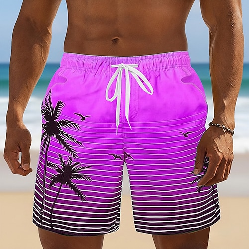 Per uomo Albero di cocco Boxer da surf Pantaloncini da mare Boxer da mare Vita normale Hawaiano Boho Informale Giornaliero Per eventi A cordoncino con fodera in rete Vita elastica progettista