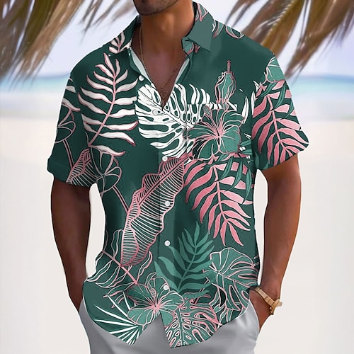 Per uomo Albero di Cocco Fiori tropicali Foglia di palma Camicia hawaiana estiva Camicia con Bottoni Camicia Aloha Manica Corta Hawaiano Ferie Abbigliamento mare Estate Primavera Collo ripiegato