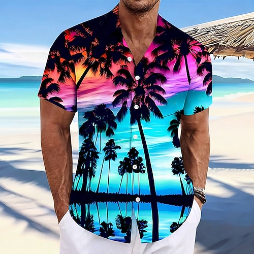 Per uomo Albero di Cocco Natura e paesaggi Piante Tropicali Camicia hawaiana estiva Camicia con Bottoni Camicia Aloha Manica Corta Hawaiano Vacanza Estate Primavera Collo ripiegato Stampa 3D camicie