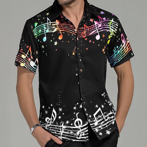 Per uomo Note Musicali Camicia Camicia con Bottoni Manica Corta Vintage Retrò Quotidiano Festival Musicale Primavera Autunno Collo ripiegato Stampa 3D camicie con colletto Nero 1 Nero