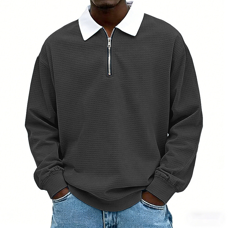 Men's Waffle Polo Shirt Quarter Zip Polo Daily Holiday Quarter Zip Long Sleeve Fashion Modern Plain Pocket Spring Fall Regular Fit Black White Navy Blue Orange Light Grey Dark Gray Waffle Polo