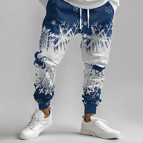 pantaloni da tuta stampati con scena natalizia da uomo babbo natale alce moda casual joggers pantaloni tasca vita media coulisse elastico in vita festa sera abbigliamento quotidiano primavera autunno
