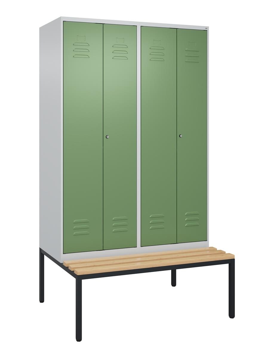 C+P Doppel-Spind Classic PLUS Buche untergebaute Bank 4 Abteile, HxBxT 212x120x82cm, Sicherheitsdrehriegel, Hellgrau/Fernblau von PROREGAL