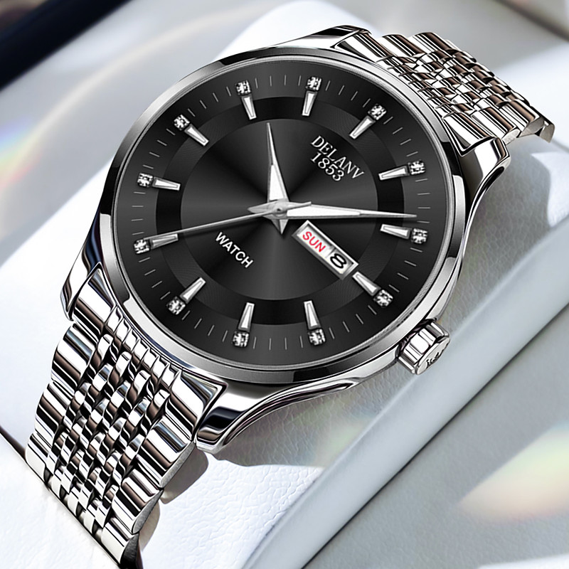 Women Men Quartz Watch Large Dial Fashion Rhinestone Business Luminous Calendar Date Waterproof Stainless Steel Strap Watch