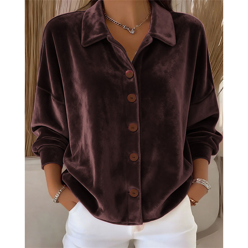 Women's Velvet Blouse Dressy Tops Plain Elegant Vintage Ladies Long Sleeve Shirt Collar Long Tops Daily Work Holiday Ruched Patchwork Buttons Maroon Light Purple Purple Brown Green Winter