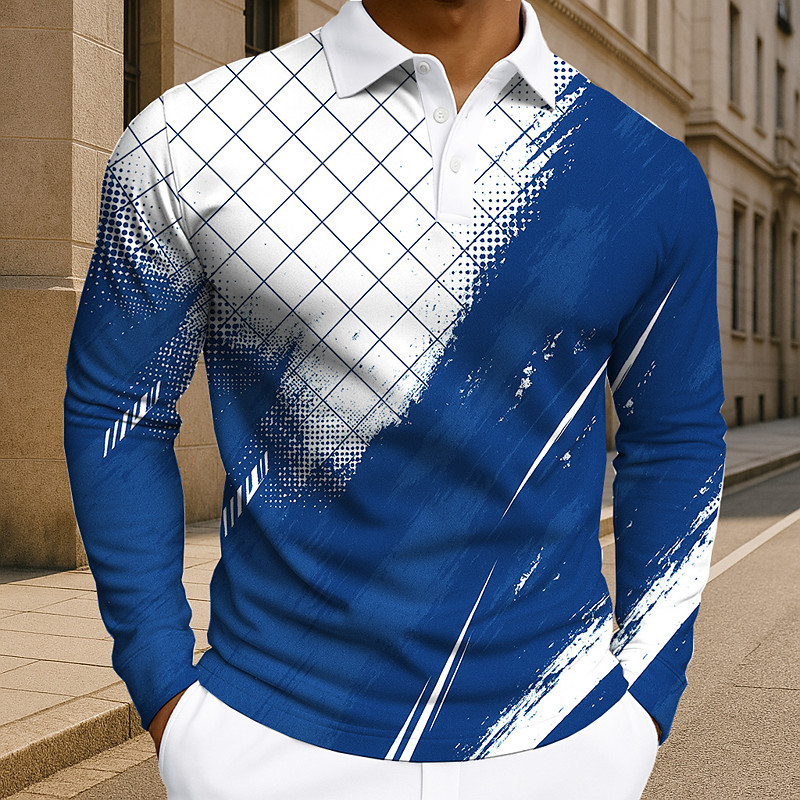 Men's Geometic Line Polo Long Sleeve Polo Shirts Lapel Business Casual Athleisure Daily Wear 3D Print Buttons Spring Fall Winter Blue Purple Green