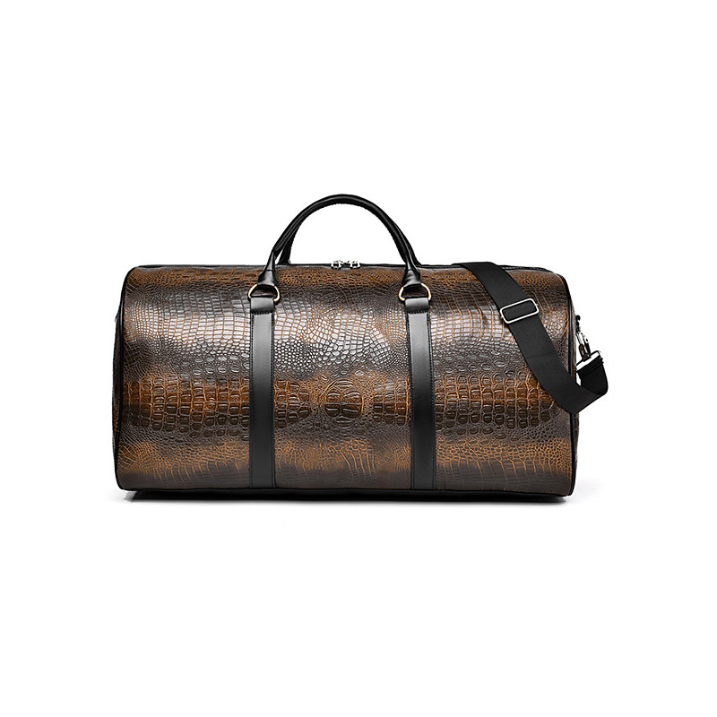 Men's Crocodile Pattern Faux Leather Weekender Bag with Adjustable Strap, Large Capacity, Waterproof - Perfect for Weekend Getaways and Short Business Trips