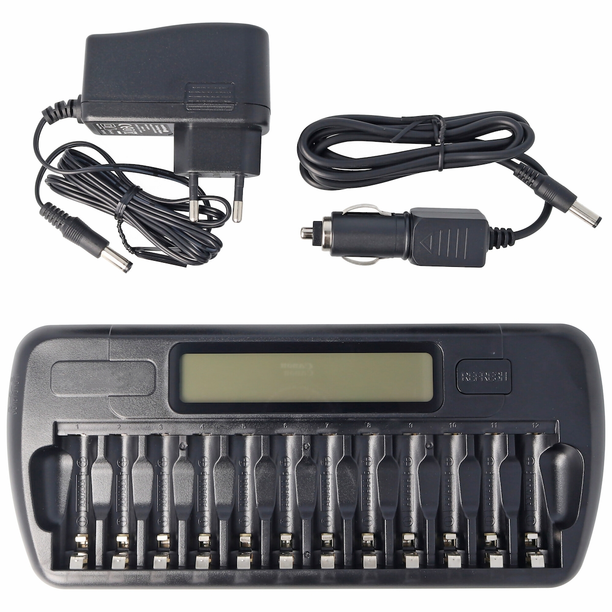 everActive Microprozessor-gesteuertes NIMH Ladegerät mit LCD-Display für 1-12 AA oder AAA Akkus