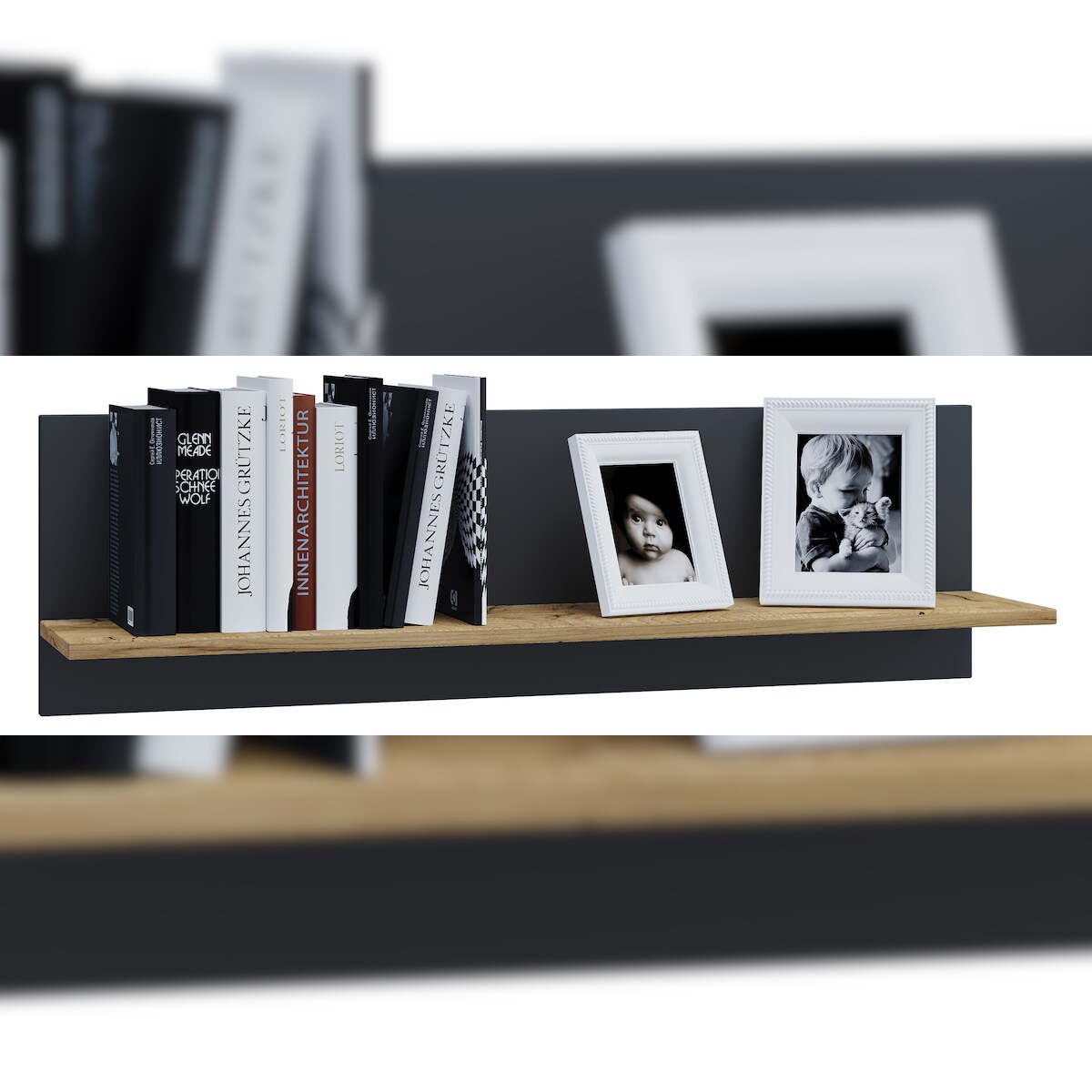 VCM Wandregal Usilo Anthrazit / Honig-Eiche H. 30 x B. 102 x T. 20 cm