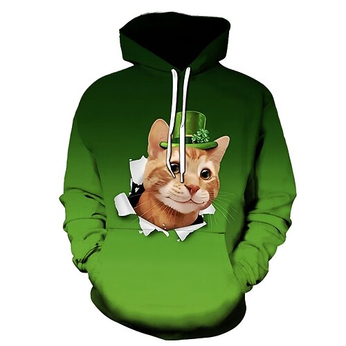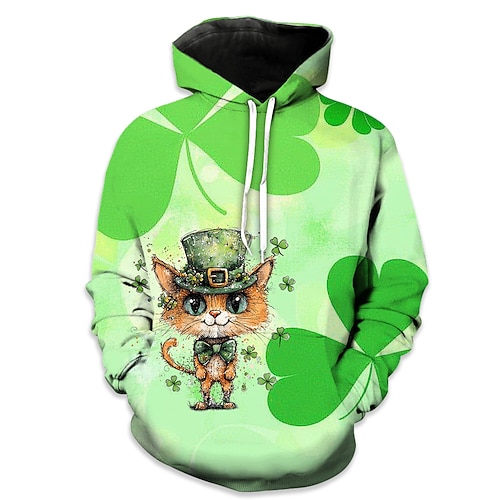 Festa di San Patrizio Gatto Trifoglio irlandesi Felpa con cappuccio Lucky Clover Tasca frontale Grafica Per Da coppia Per uomo Per donna Per adulto giorno di San Patrizio Stampa 3D Feste Casual