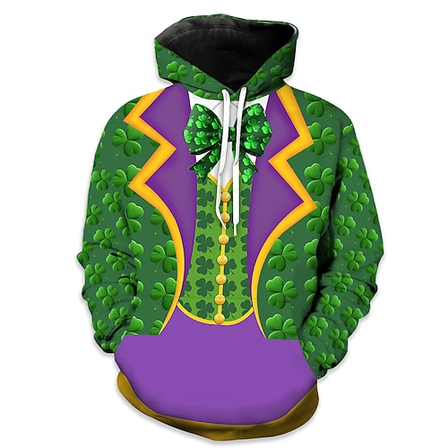 Giorno di San Patrizio Per uomo Trifoglio Irlanda folletto Felpa Moda Esagerato 3D Girocollo Casa All'aperto Club Feste Viola Arancione Verde Girocollo Stampa 3D Inverno Primavera Autunno