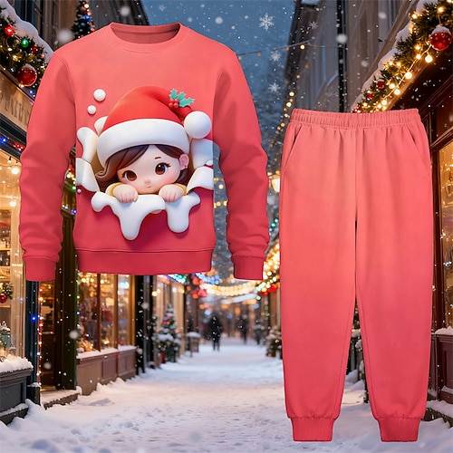 Natale San Patrizio Unisex Ragazzi Ragazze 3D Grafico Elfo Elfo di San Patrizio Tuta sportiva Set Felpa Pantaloni della tuta Tute da ginnastica Manica Lunga Stampa 3D Autunno Inverno Sport Moda