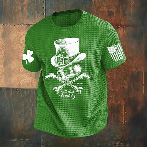 Giorno di San Patrizio San Patrizio Festa di San Patrizio Per uomo Trifoglio Teschi Camicia a nido d'ape Maglietta Manica Corta maglietta Stampa 3D Girocollo Camicia Sport Moda Designer Quotidiano