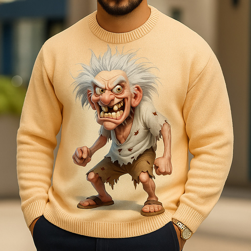 Men's 3D Cartoon Cartoon Character Pullover Sweater Jumper Knitwear Crewneck Casual Vacation Home Street 3D Print Knitting Keep Warm Long Sleeve Spring Fall Winter White Yellow Brown