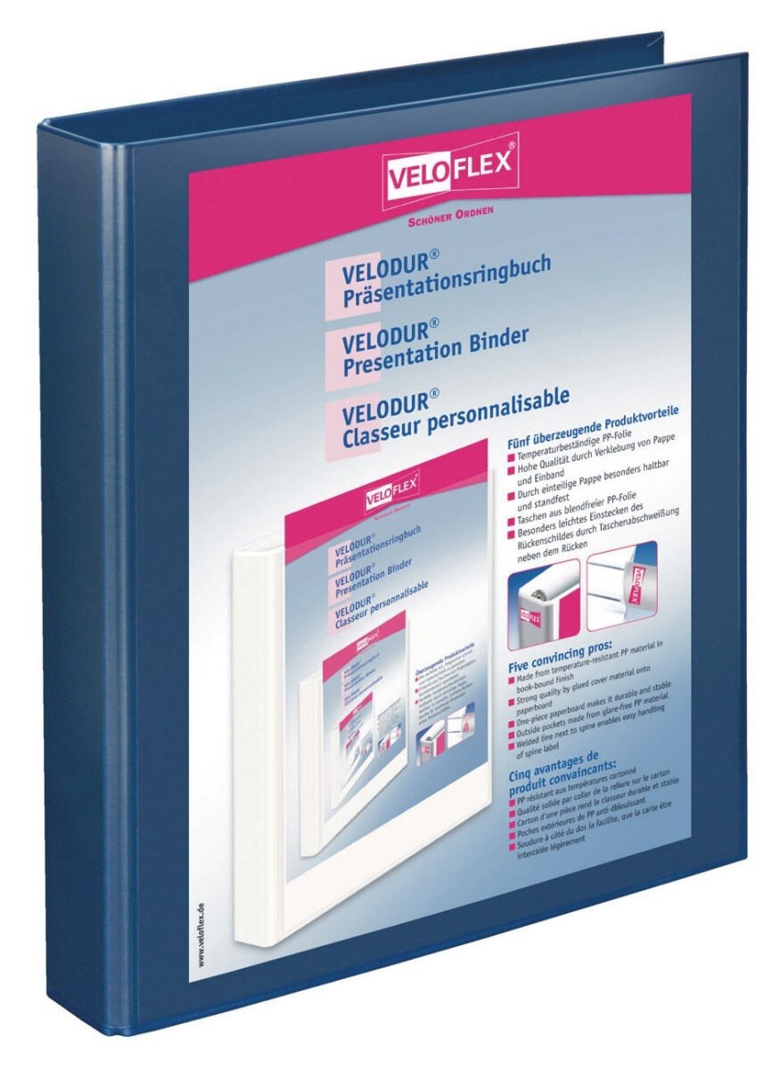 Veloflex Präsentationsringbuch Velodur A4 PP kaschiert 4-D-Ring-Mechanik 25mm blau Packung mit 10 Stück