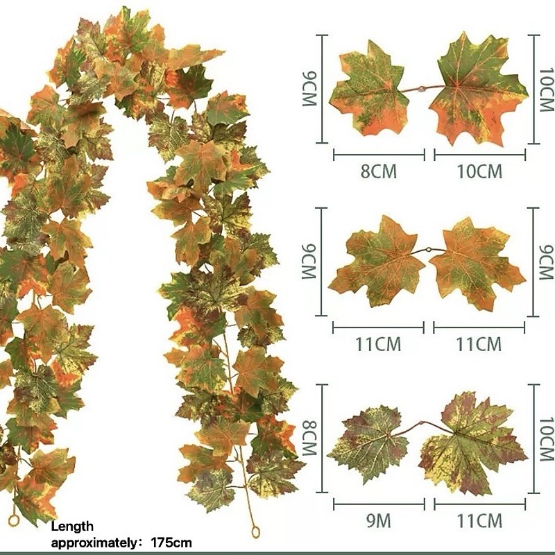 Fall Artificial Maple Leaf Garland, Halloween and Thanksgiving Harvest Vine Decoration, Realistic Faux Autumn Leaves for Indoor and Outdoor Use