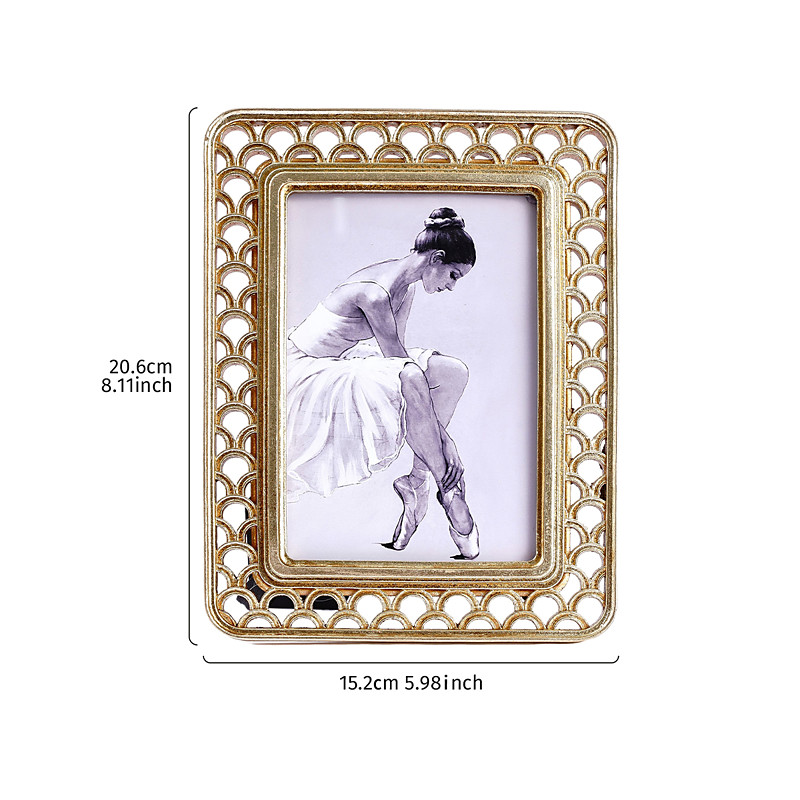 3D Pattern Resin Photo Frame – Gold Decorative Tabletop Picture Frame, Dual Orientation for Bedroom, Study, or Office Desk