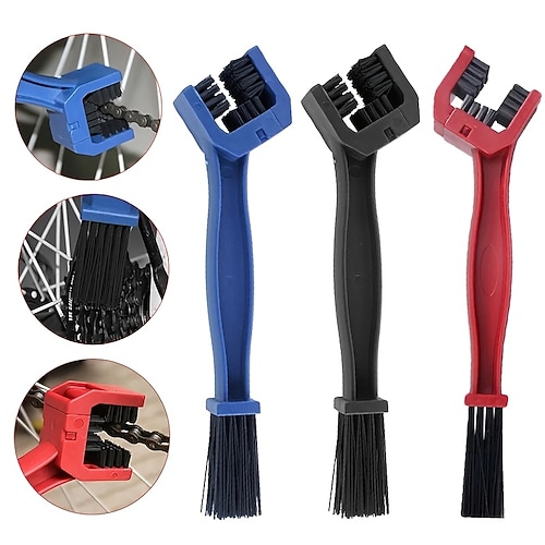 moto da 6 Spazzola per la pulizia della catena della bicicletta, strumento di manutenzione a 3 lati per ingranaggi, pignone e cassetta, kit di pulizia per MTB e bici da strada, 3 colori (blu, rosso,