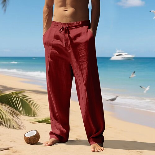 Herren Leinenhosen Hose Sommerhose Baggy-Hosen Kordelzug Elastischer Bund Gerader Schnitt Einfach Komfort Atmungsaktiv Volle Länge Täglich Ferien Strand Urlaub Mode Denim Blue Hellgrün Unelastisch