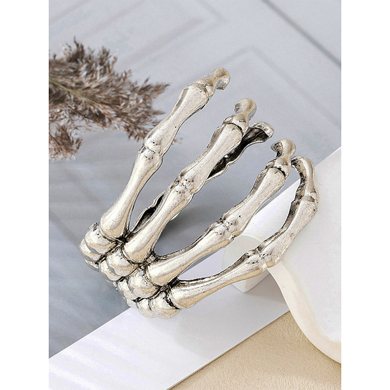 Women's Halloween Skeleton Bone Cuff Bracelet – 4-Row Gothic Alloy Hinged Bangle, Adjustable Open Wrap, Statement Costume Jewelry for Cosplay, Parties Night Out