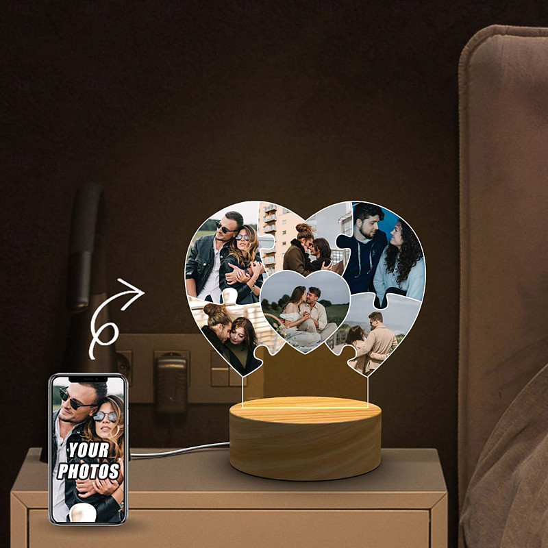 Personalized Light Up Photo Frame Custom Wedding Acrylic Night Lights for Wedding Valentine's Day Engaged Gifts Gift for Her Heart Lamp Anniversary Plaque