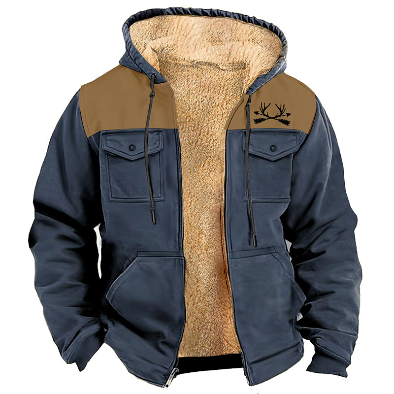 Men's Camo Camouflage Fleece Hoodie Jacket Sweatshirt Fashion Cool Daily Vintage Retro Hooded Outdoor Gift Hunting Blue Black Brown Green Zipper Pocket Fall Winter Designer S M L XL XXL XXXL