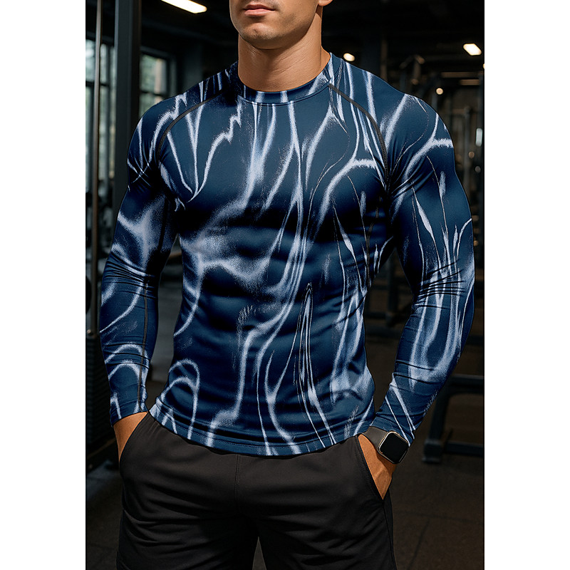 Men's Unisex Compression Shirt Running Shirt 3D Print Long Sleeve Base Layer Geometric Quick Dry Compression Power Flex Moisture Wicking Gym Workout Active Training Exercise Sportswear Activewear Blue