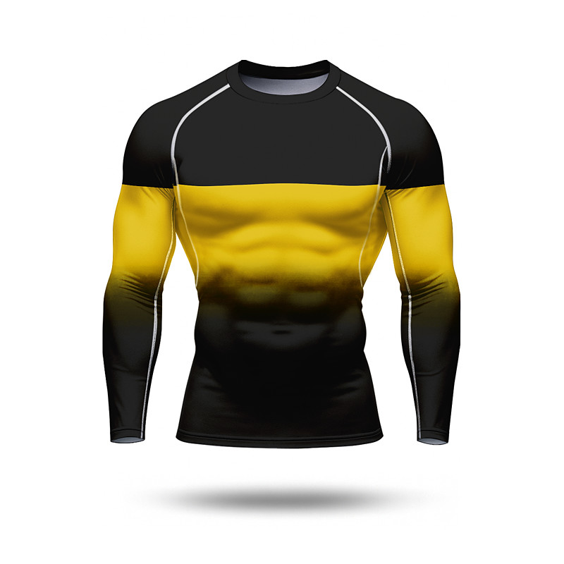 Men's Compression Shirt Running Shirt 3D Print Color Block Long Sleeve Base Layer Gradient Quick Dry Compression Power Flex Moisture Wicking Gym Workout Active Training Exercise Sportswear Activewear