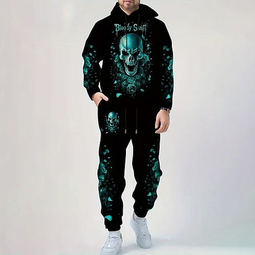 Per uomo Teschio 2 pezzi Set di felpe 3D Tuta Felpa con Cappuccio Manica Lunga Pantaloni lunghi Con Cappuccio Casual Quotidiano Athleisure Stampa 3D Primavera Autunno Inverno azzurro cielo Ametista